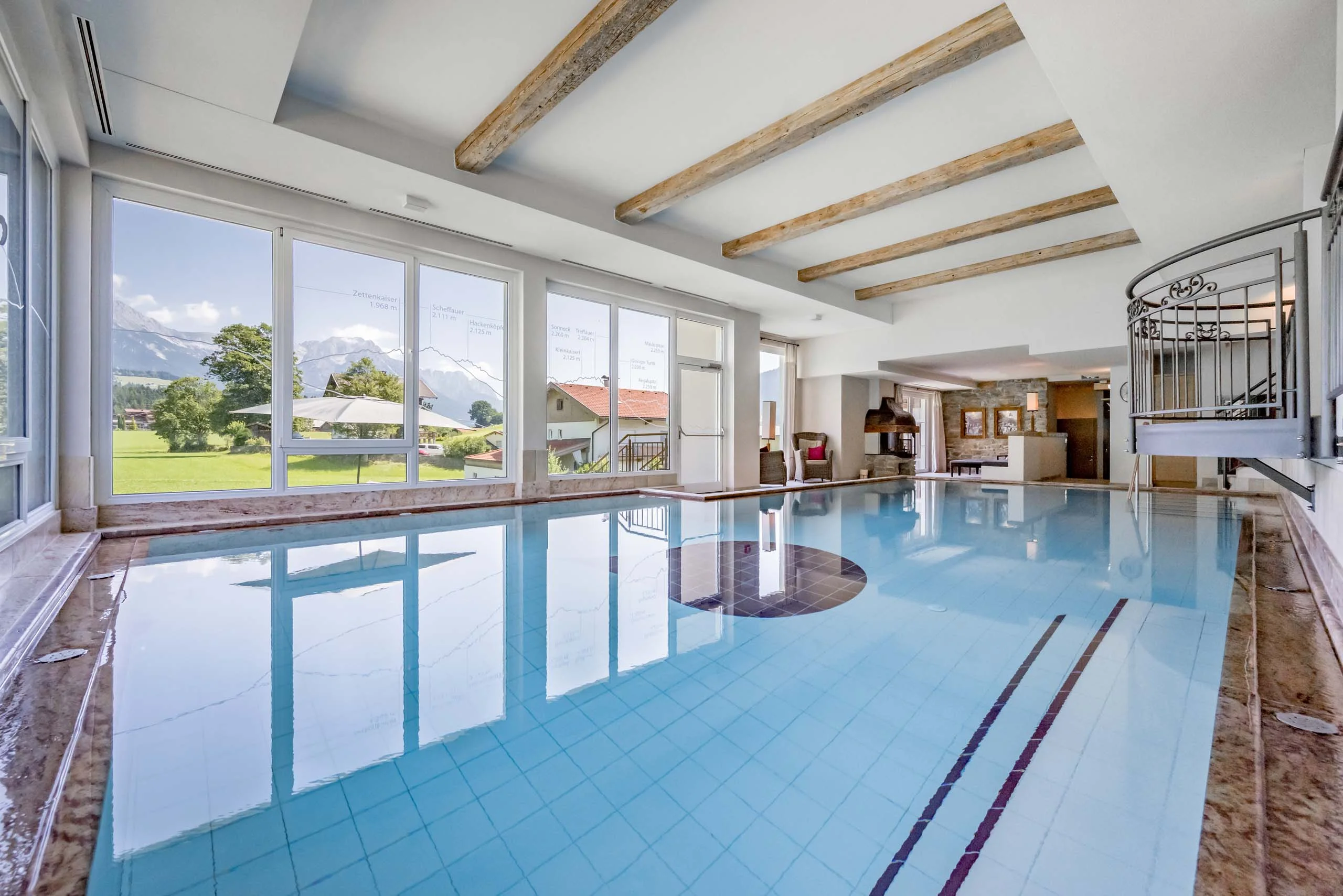 Mit eigenem Garten und freiem Blick auf den Wilden Kaiser lädt das Zimmer zum Wohlfühlen ein. Ein separates Kinderzimmer mit Stockbetten bietet einen kleinen Rückzugsraum, während das Bad mit Badewanne und begehbarer Komfortdusche Entspannung verspricht. Weitere Annehmlichkeiten, wie Zimmersafe, Kühlschrank, Fön, Kosmetikspiegel und Bademantel, sorgen für zusätzlichen Komfort. Ein reservierter Carport-Abstellplatz rundet das Angebot ab.